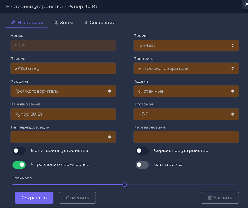- Индивидуальная и групповая настройка громкости по зонам и трансляциям.